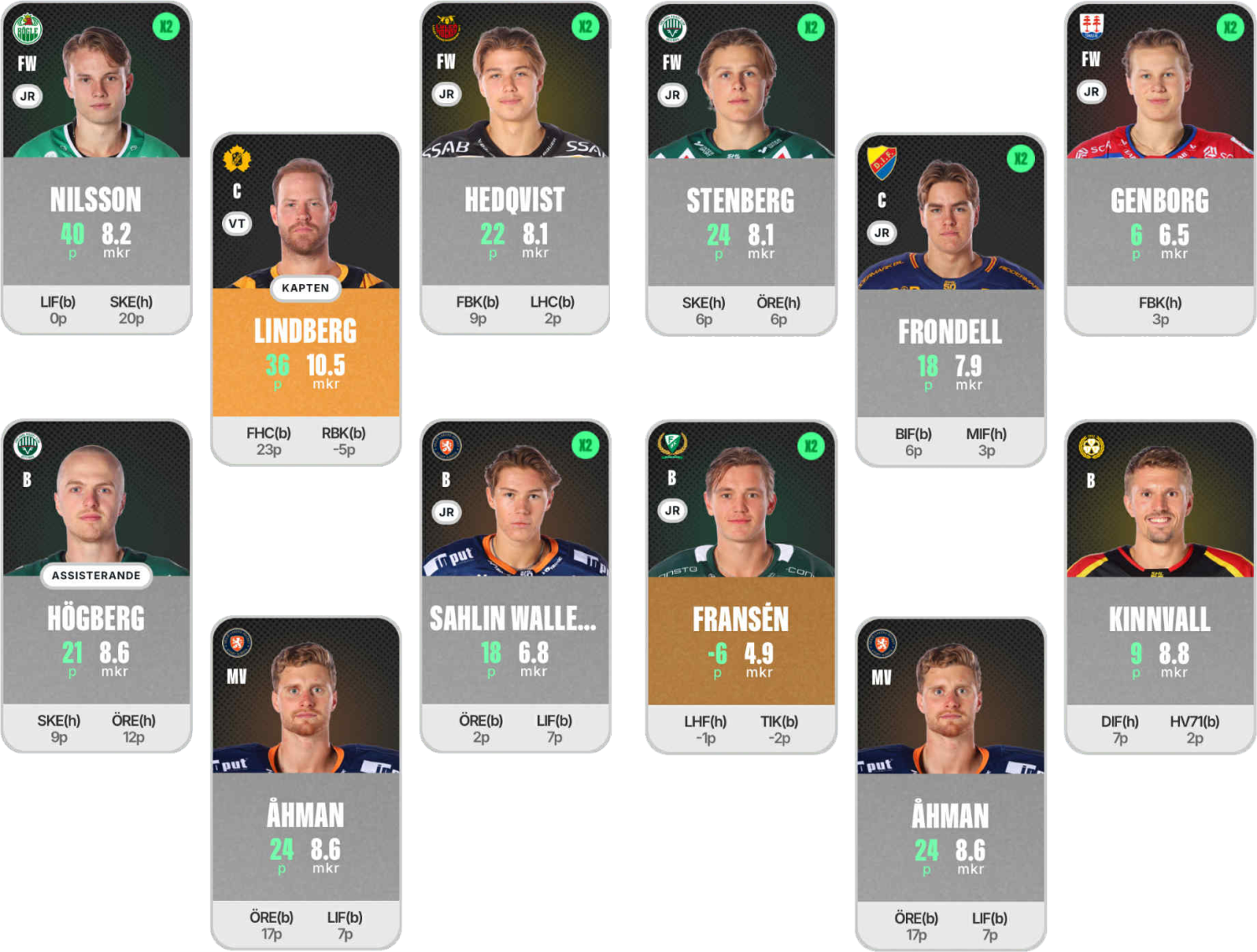 Bäst av dem var Felix Nilsson, som stod för 40 poäng under matchveckan. Även Ivar Stenberg och Isac Hedqvist bidrog starkt, med 24 respektive 22 poäng.