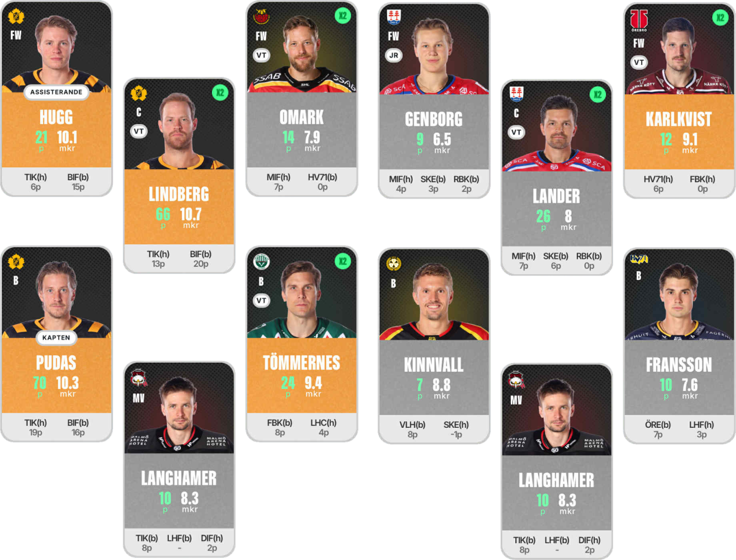 – Jag funderade länge på Pudas eller Hugg som kapten. Jag är väldigt glad att jag valde Pudas den här veckan, även om Hugg gjorde ett fantastiskt mål, säger han.
