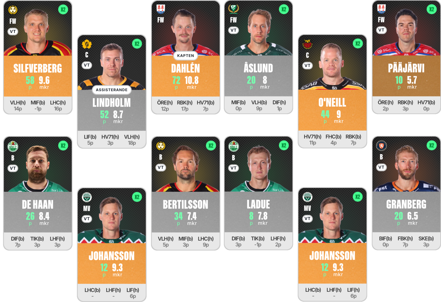 Inför Matchvecka 16 föll valet på Veterankortet – ett medvetet drag då flera juniorer saknades. Frånvaron av JVM-spelarna gav de mer rutinerade spelarna större roller.