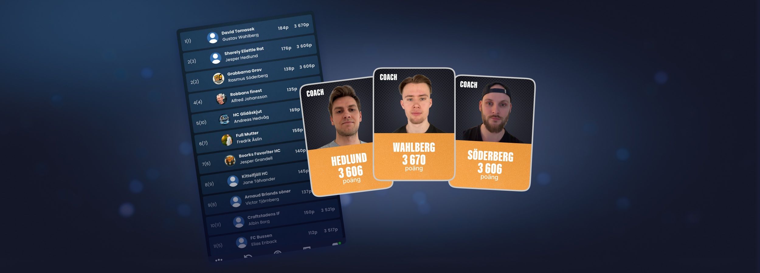 Gustav Wahlberg toppar Årets coach på 3 670 poäng, med Jesper Hedlund och Rasmus Söderberg jagande tätt bakom.