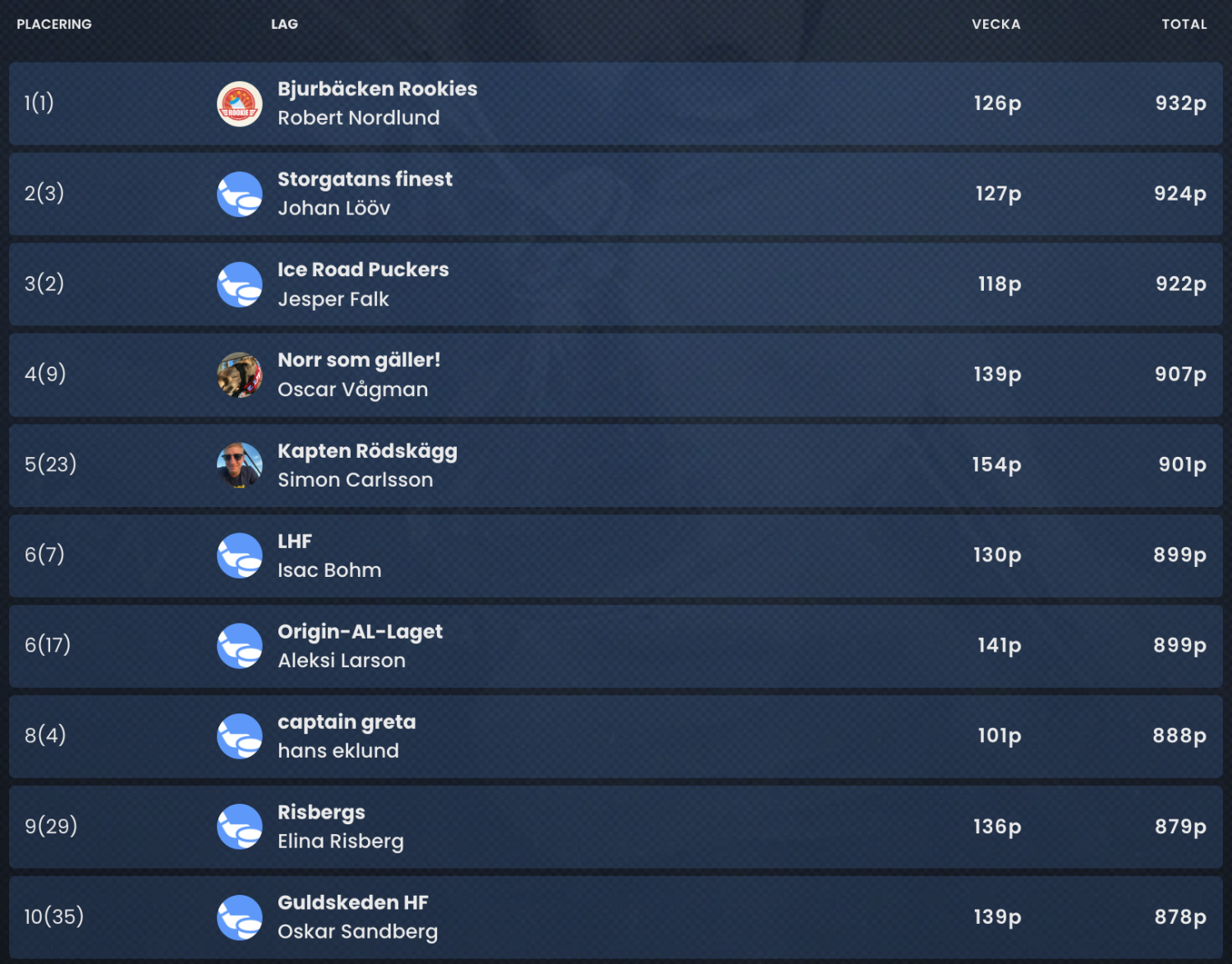 Han har åtta poängs försprång på uppstickaren Johan Lööv, Storgatans Finest, och ytterligare två på den tidigare ledaren Jesper Falk, Ice Road Puckers.